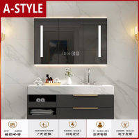 苏宁放心购智能橡木浴室柜组合落地现代简约洗手洗脸盆卫生间洗漱台北欧轻奢A-STYLE