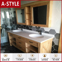 苏宁放心购北欧橡木浴室柜原木洗脸盆柜组合民宿卫生间洗手台镜柜落地双盆轻A-STYLE