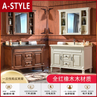 苏宁放心购(定制)美式浴室柜红橡木组合镜柜洗漱台大理石洗手台落地洁具洗面盆A-STYLE