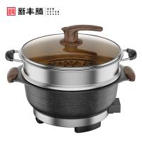 新丰腾电热锅多功能家用宿舍电火锅麦饭石电炒锅蒸煮饭一体式无烟不粘无涂层大容量炒菜锅尊味32cm标配+201不锈钢蒸笼