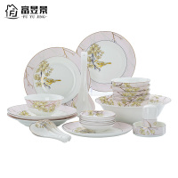 富昱景 欧式碗碟套装 家用景德镇陶瓷器餐具碗筷 骨瓷吃饭碗盘子组合 44头空山鸟语