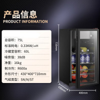 荣事达冰吧小型单客厅家用小冰箱办公室透明茶叶饮料冷藏红酒柜 -75黑色[全冷藏+微冻]不带灯