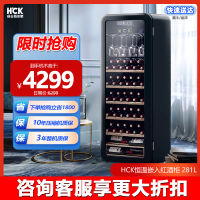 HCK哈士奇208R圆弧红酒柜92瓶恒温嵌入式客厅超薄冷藏冰吧冰箱-黑色
