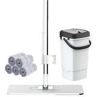 利临炫洁免手洗平板拖把桶套装干湿两用推拉挤水平板拖布家用墩布(加强杆)共2块原装布