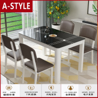 苏宁放心购餐桌椅组合小户型钢化玻璃餐桌4人6人简约现代家用长方形吃饭桌子A-STYLE家具