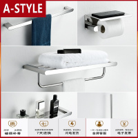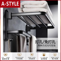 苏宁放心购卫生间免打孔毛巾架壁挂置物架收纳厕所浴室挂件太空铝黑色挂钩架A-STYLE