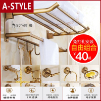 苏宁放心购全铜仿古免打孔毛巾架挂件套装浴室卫浴置物架复古欧式浴巾架套装A-STYLE