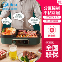 美的食色电火锅锅家用多功能料理锅烤涮一体蒸煮炒煎烤肉盘烧烤炉 绿色