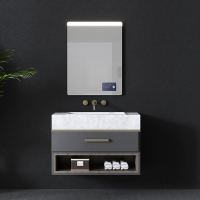 苏宁放心购生态实木镜浴室柜推拉隐藏式镜子组合岩板台面卫生间洗漱台A-STYLE