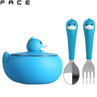 Face注水保温碗 BD-W1LS 蓝色 3.5-5英寸 儿童餐具 宝宝吃饭吸盘碗 不锈钢婴儿碗勺套装辅食碗