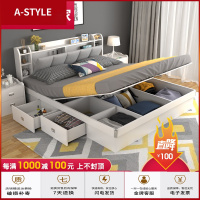 苏宁放心购床现代简约多功能小户型主卧双人板式床经济型气动高箱收纳储物床A-STYLE家具