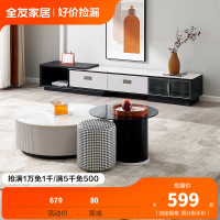 全友家居茶几电视柜组合现代简约岩板茶几分体式圆形茶桌可伸缩电视柜客厅储物