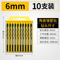 瓷砖钻头玻璃陶瓷混凝土水泥转头6mm8mm合金打孔套装手电钻三角钻 6mm一盒(十支装)