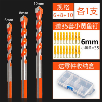 瓷砖钻头玻璃陶瓷混凝土多功能水泥转头合金打孔手电钻三角钻头 霸王钻 6+8+10mm 各一支 (送小黄鱼零件盒)