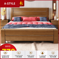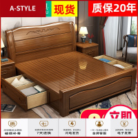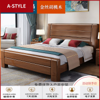 苏宁放心购金丝胡桃木实木床 现代简约中式1.8米主卧双人床 1.5m高箱储物床A-STYLE家具