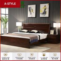苏宁放心购全实木床1.8米双人床纯黑胡桃木床 简约现代中式高箱储物床大卧室A-STYLE家具