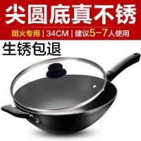 34cm(有盖) [精铁圆底 燃气专用][生锈包退] 苏泊尔大铁锅炒锅家用老式无涂层圆底炒菜锅燃气灶适用不生锈精铁