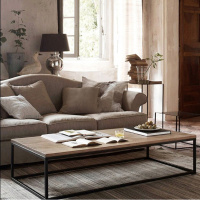 苏宁放心购现代简约茶几实木茶桌美式乡村复古做旧铁艺北欧长方形小桌子A-STYLE