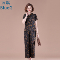 蓝旗 上衣+裤子妈妈中年女短袖2021新款夏宽松两件套套装