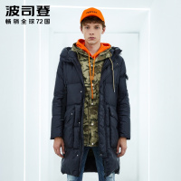 波司登BOSIDENG男士中长款羽绒服商务休闲连帽防寒外套2018冬季B80141131