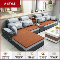 苏宁放心购布艺沙发客厅整装组合简约现代转角贵妃冬夏两用藤板拆洗棉麻沙发A-STYLE家具