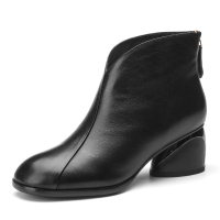 红蜻蜓女鞋正品英伦简约粗跟短筒靴女优雅加绒马丁靴棉靴