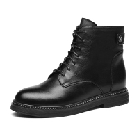 红蜻蜓女鞋冬季新款真皮英伦休闲马丁靴加绒保暖系带短靴棉鞋