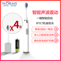 worms电动牙刷成人全自动声波防水软毛男女士学生党情侣牙刷 牛奶白一档位电池款配(4刷头+5号干电池)