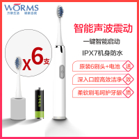 worms电动牙刷成人全自动声波防水软毛男女士学生党情侣牙刷 牛奶白一档位电池款配(6刷头+5号干电池)