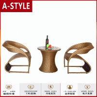 苏宁放心购藤椅三件套庭院仿藤椅子茶几田园休闲阳台桌椅户外家具香槟色一桌两椅客厅卧室欧式田园A-STYLE家具