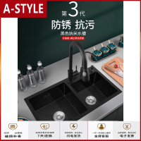 苏宁放心购纳米手工水双 厨房304不锈钢黑色洗菜盆双手工盆洗碗池台下A-STYLE
