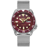 精工手表新盾牌5号系列100米防水自动/手动上链米兰带红珊瑚运动机械男表 SRPD69K1