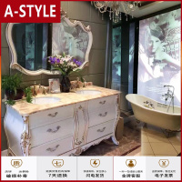 苏宁放心购(定制)弧形实木简欧式浴室柜双盆橡木卫浴柜洗漱台实木卫浴柜洗脸盆组合A-STYLE