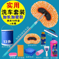 新款洗车刷子工具长柄伸缩纯棉软毛擦车拖把专用拖把洗车套装组合家用 黄白10件套收纳箱 抖音