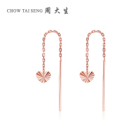 周大生18k金心形耳线女正品彩金耳钉耳链玫瑰金爱心耳饰女友礼物