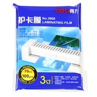 得力deli3寸塑封膜护卡膜3808 过塑膜塑封纸过塑纸热裱100张 65*95mm共5包