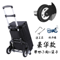 闪电客 铝合金拉杆车便携折叠手拉车行李车拖车购物买菜小推车拉货搬运车 豪华版 橡胶轮 四小轮 黑色 配袋子 抖音