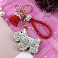 新款手工镶钻韩国狗狗公仔汽车钥匙扣流苏挂件女包包挂饰挂件创意礼品 红色 抖音