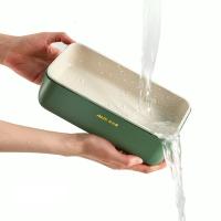 抗菌饭盒微波炉加热上班族透明带盖分隔玻璃碗大容量分格保鲜盒