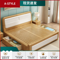 苏宁放心购实木床现代简约1.8米双人床主卧室白色1.5m1.2单人床橡木储物大床A-STYLE家具