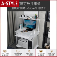 苏宁放心购小型电脑桌家用钢化玻璃台式桌 多层简约书桌可移动带书架打印架A-STYLE家具
