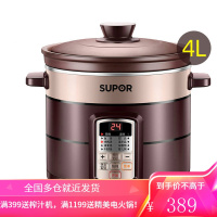苏泊尔电炖锅家用陶瓷锅5L升大容量全自动煮粥电砂锅智能煲汤神器 褐色4L