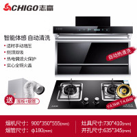 Chigo/志高抽油烟机燃气灶套餐家用厨房烟机灶具套装自动清洗特价 智能体感+自动清洗+猛火嵌入式4.8kw双灶