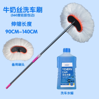 汽车用品专用工具洗车拖把掸子刷子擦车布长杆柄伸缩软毛除尘 牛奶丝(加厚款)+洗车液+备用头 抖音