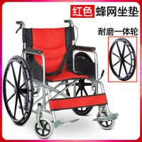 衡互邦轮椅老年人折叠轻便手推车残疾人手刹便携轮椅车老人代步车 一体轮 红色蜂网
