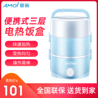 夏新(AMOI) 电热饭盒 两层三层自由拆装保温加热迷你蒸煮便携插电蒸饭锅自动1-3人 浅蓝色