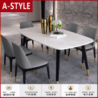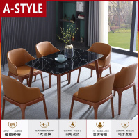 苏宁放心购北欧大理石实木餐桌椅组合轻奢后现代小户型岩板石饭桌子家用简约A-STYLE