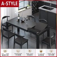 苏宁放心购大理石餐桌伸缩餐桌椅实木北欧小户型火烧石餐台带电磁炉黑色桌子A-STYLE