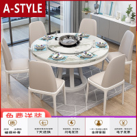 苏宁放心购岩板餐桌圆桌现代简约家用小户型北欧大理石圆形餐桌椅组合带转盘A-STYLE