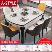 苏宁放心购大理石餐桌电磁炉现代家用实木伸缩折叠圆桌椅组合小户型饭桌岩板A-STYLE